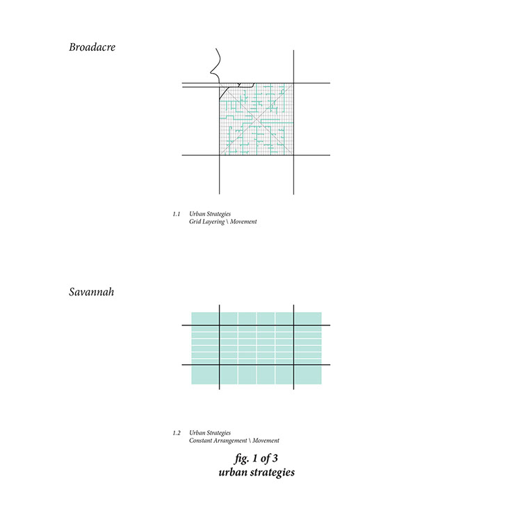 This is an exploration of Frank Lloyd Wright’s principles of Broadacre City and how they have translated to what we develop the city grid today. Predating the emergence of suburbs, Wright’s project explores the grid as a form of provisions (Form, Contingency, and Agency) as a way to establish a democratic society.