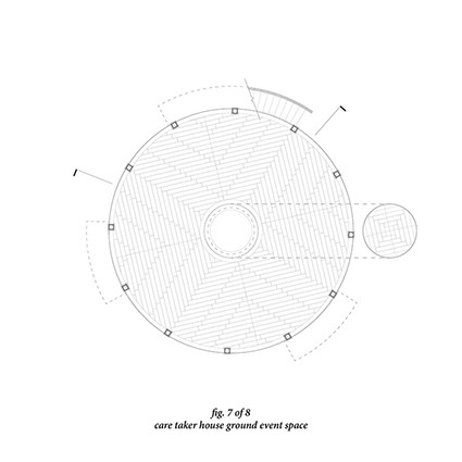 The caretakers home is the outlier on the site. As the largest space it becomes a beacon and haven for all communal activities., all events are hosted at the base of the home which is adaptable, simple, and open.