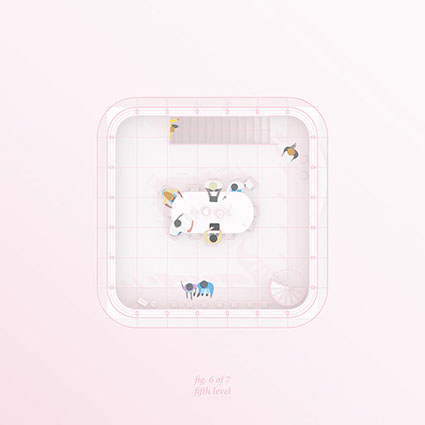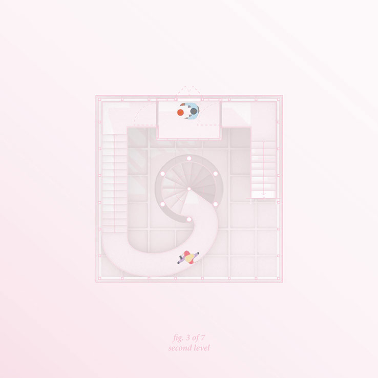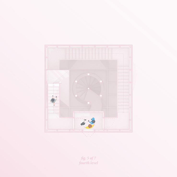 Each zone, with a different set of stairs and experiences, provides a whimsical trip up to the guest area at the top of the tower.