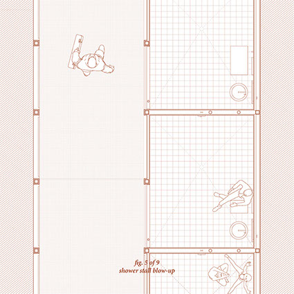 The internal components and spacial constructs of the washrooms utilize aspects of code to create and question the function of these spaces.