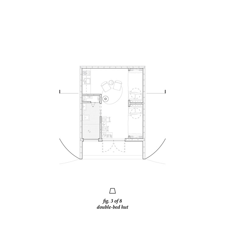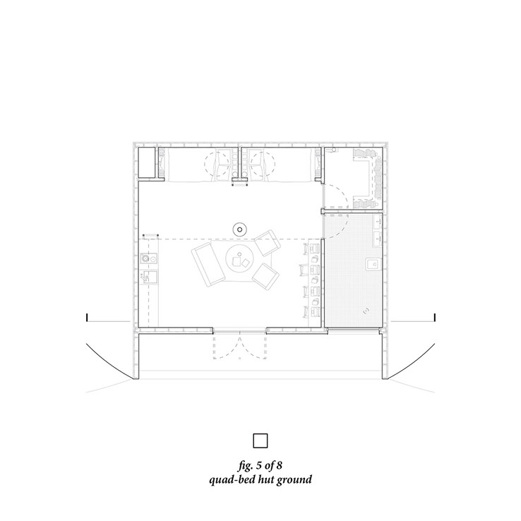 These huts provide the dwellers a unique experience and connection to the land they inhabit. The forms and setting out allow for each hut to be given a heightened sense of privacy. Each hut is separated and connected with bushed paths and are positioned along a perimeter ring.